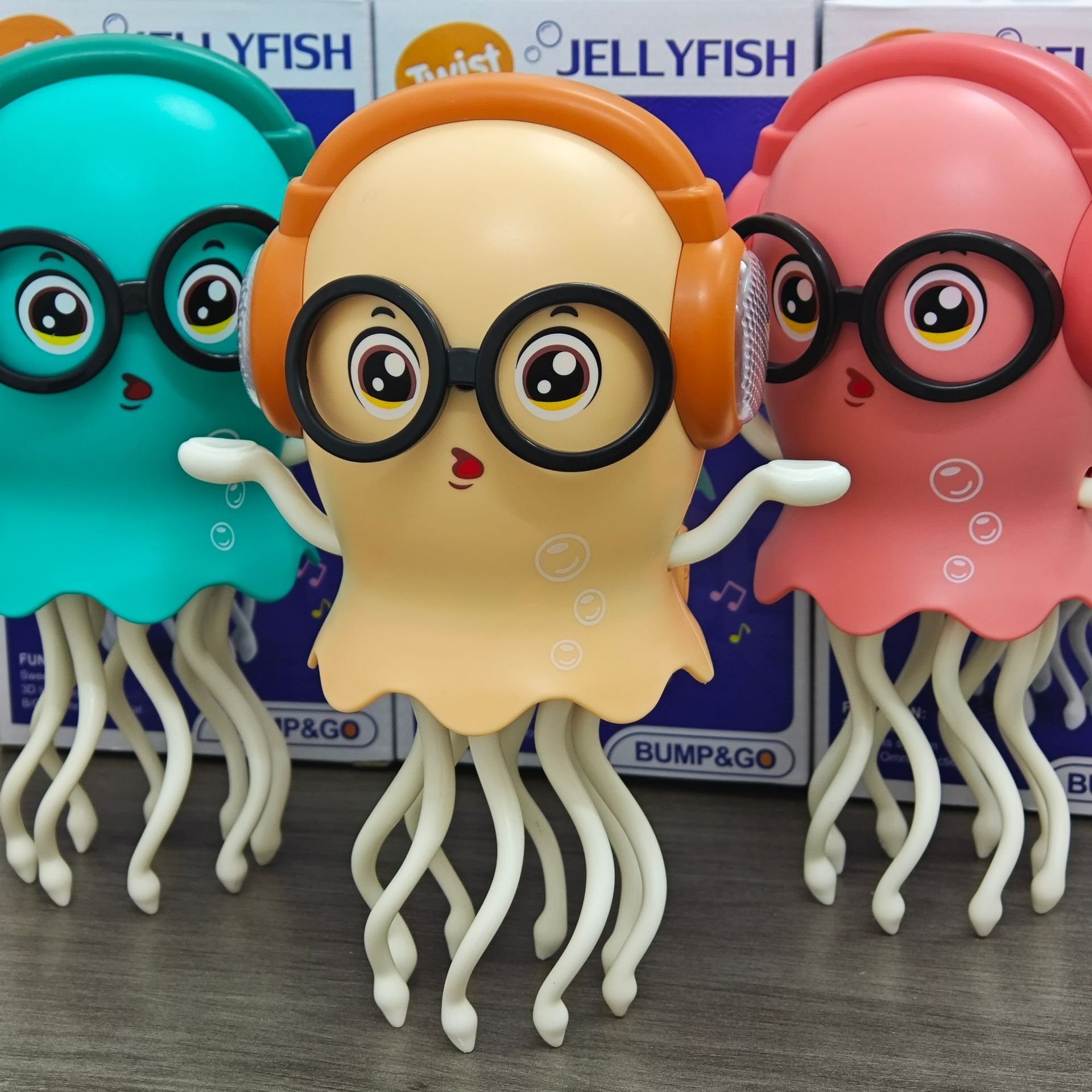 This dancing jellydancer automatically changes direction upon collision with obstacles, rather than sensing them to turn.